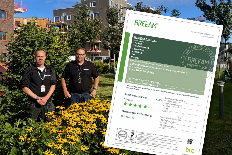 Nå er vi også BREEAM-sertifisert i kategorien «Excellent».