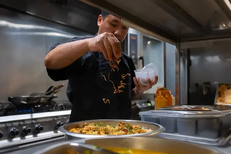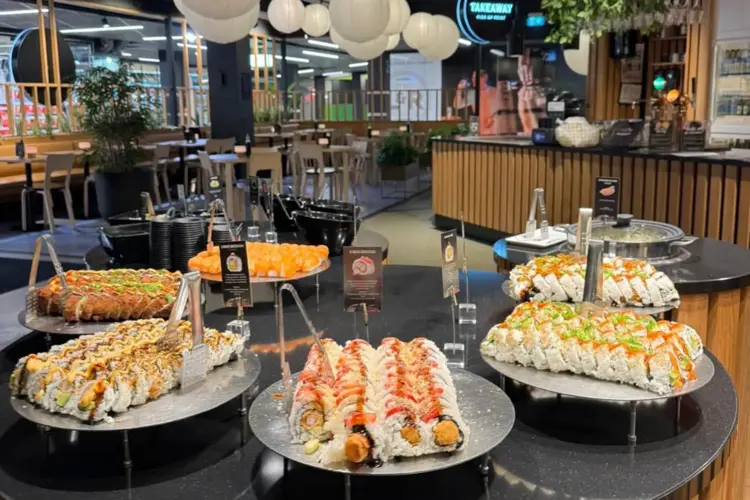 Sabrura serverer buffet med fersk sushi, smakfulle sticks og varme asiatiske retter – perfekt for både lunsj og middag.